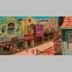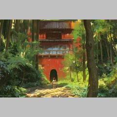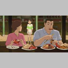 | Chihiro with her parents on the way to the new house | At the entrance | In the enchanted village | |