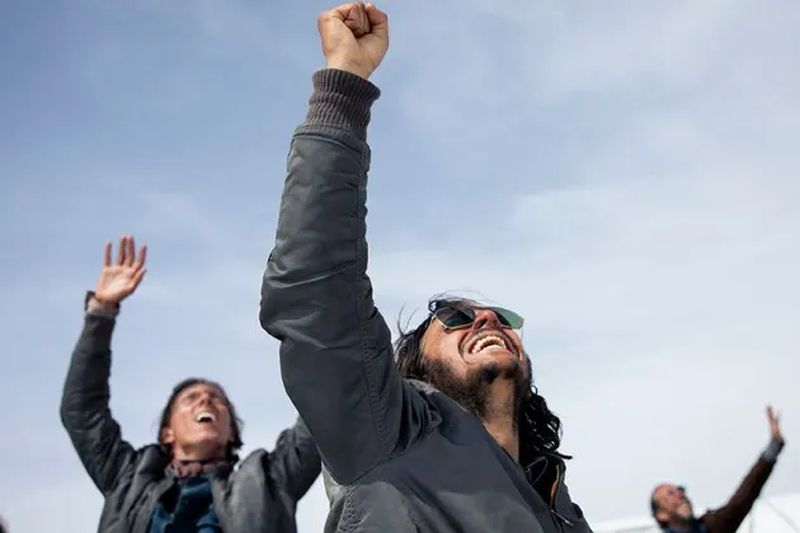 | Trying to get noticed by the rescuers |
