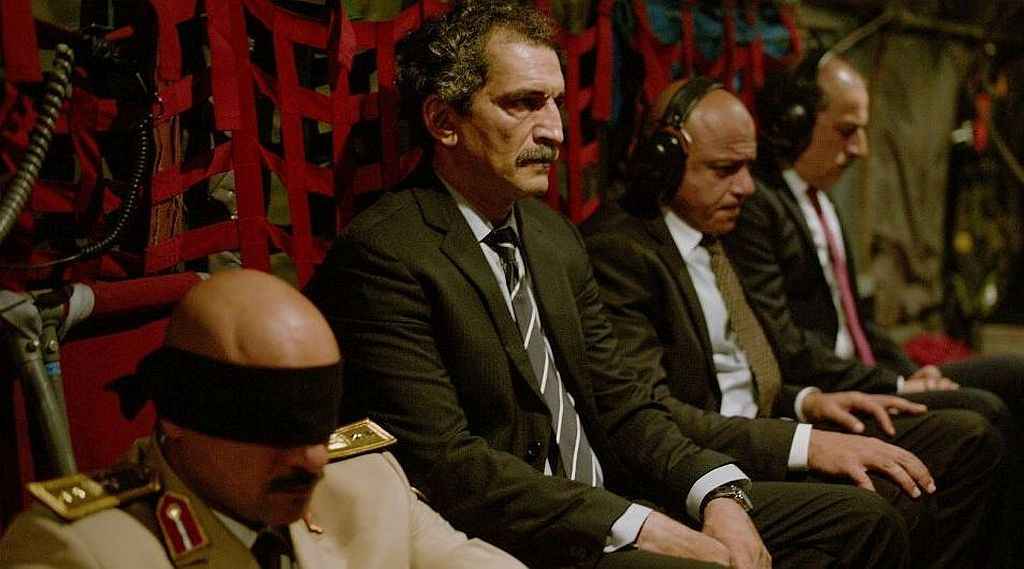 | In the military helicopter |