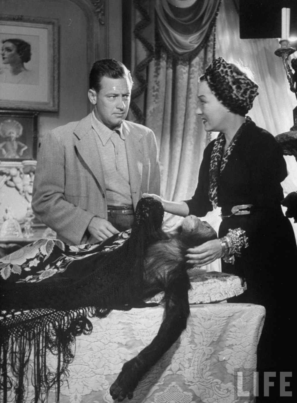 | Joe Gillis, Norma Desmond with dead monkey |