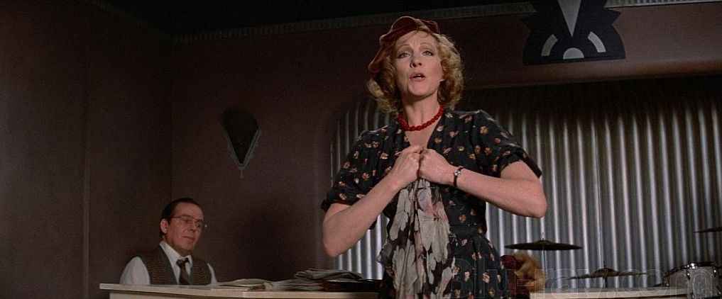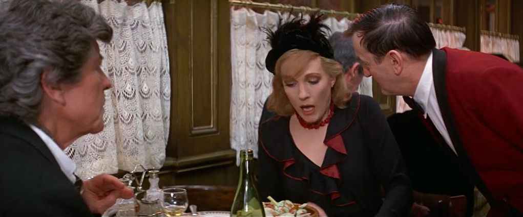 | In the restaurant, cockroach scene: Toddy, Victoria, Waiter |